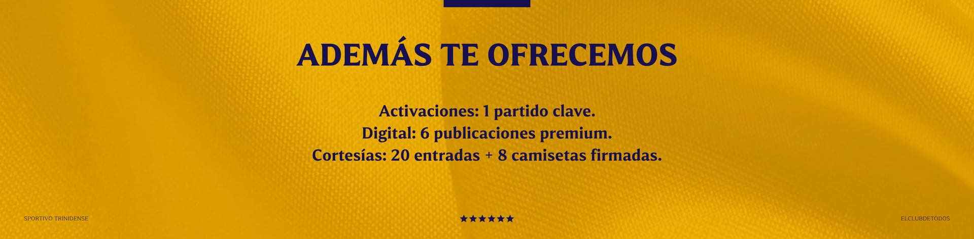El Plan Oro asegura presencia relevante en la camiseta oficial, con posibilidades de ubicación en la parte frontal debajo del sponsor Elite, en los hombros delanteros, en la espalda alta principal o en la zona posterior del short. Un paquete pensado para marcas que buscan fuerte recordación visual y presencia constante en momentos clave de juego y en medios televisivos y digitales.